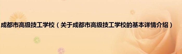 本文关于成都市高级技工学校的基本详情介绍就讲解完毕,希望对大家有所帮助。
