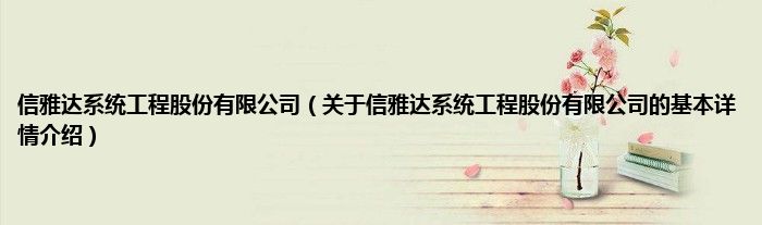 本文关于信雅达系统工程股份有限公司的基本详情介绍就讲解完毕,希望对大家有所帮助。