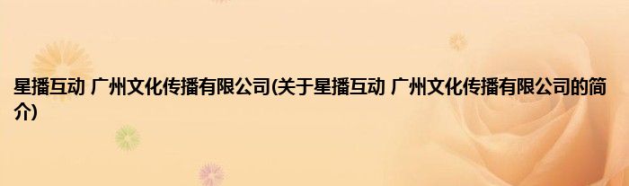 本文关于星播互动 广州文化传播有限公司的简介就讲解完毕,希望对大家有所帮助。