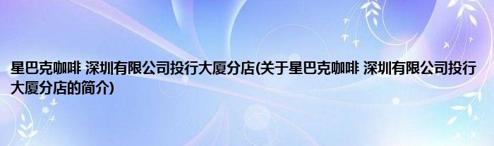 星巴克咖啡 深圳有限公司投行大厦分店(关于星巴克咖啡 深圳有限公司投行大厦分店的简介)