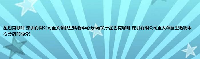 星巴克咖啡 深圳有限公司宝安领航里购物中心分店(关于星巴克咖啡 深圳有限公司宝安领航里购物中心分店的简介)
