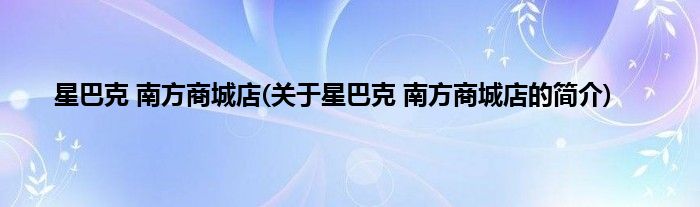 本文关于星巴克 南方商城店的简介就讲解完毕,希望对大家有所帮助。