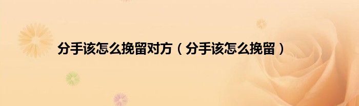 以上就是【分手该怎么挽留对方,分手该怎么挽留】相关内容。