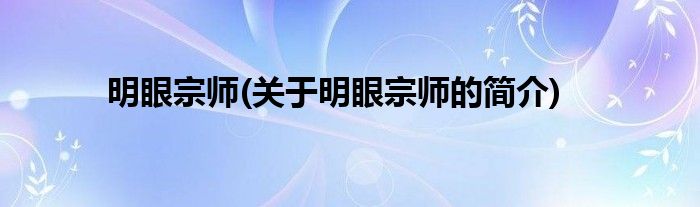 大家好,明眼宗师,关于明眼宗师的简介很多人还不知道,现在让我们一起来看看吧!