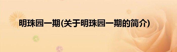 本文关于明珠园一期的简介就讲解完毕,希望对大家有所帮助。