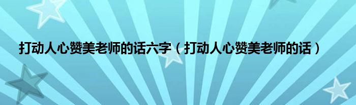 以上就是【打动人心赞美老师的话六字,打动人心赞美老师的话】相关内容。