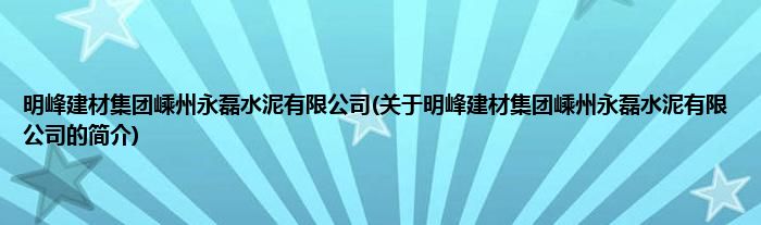 大家好,明峰建材集团嵊州永磊水泥有限公司,关于明峰建材集团嵊州永磊水泥有限公司的简介很多人还不知道,现在让我们一起来看看吧!