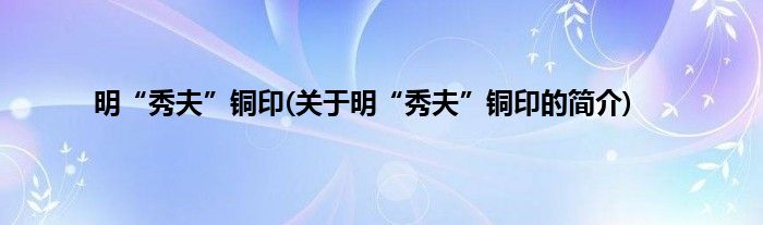 本文关于明“秀夫”铜印的简介就讲解完毕,希望对大家有所帮助。