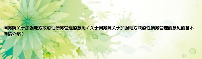 本文关于国务院关于加强地方政府性债务管理的意见的基本详情介绍就讲解完毕,希望对大家有所帮助。