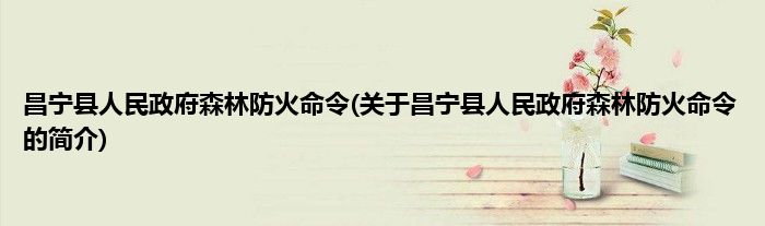本文关于昌宁县人民政府森林防火命令的简介就讲解完毕,希望对大家有所帮助。
