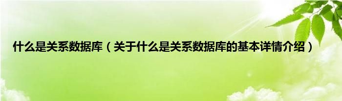 本文关于什么是关系数据库的基本详情介绍就讲解完毕,希望对大家有所帮助。
