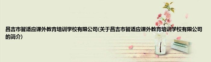 本文关于昌吉市智适应课外教育培训学校有限公司的简介就讲解完毕,希望对大家有所帮助。