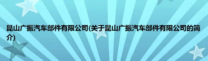 本文关于昆山广振汽车部件有限公司的简介就讲解完毕,希望对大家有所帮助。