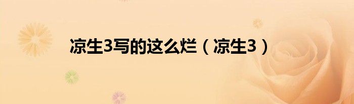 大家好,小问来为大家解答以上问题。凉生3写的这么烂,凉生3这个很多人还不知道,现在让我们一起来看看吧!