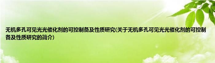 本文关于无机多孔可见光光催化剂的可控制备及性质研究的简介就讲解完毕,希望对大家有所帮助。