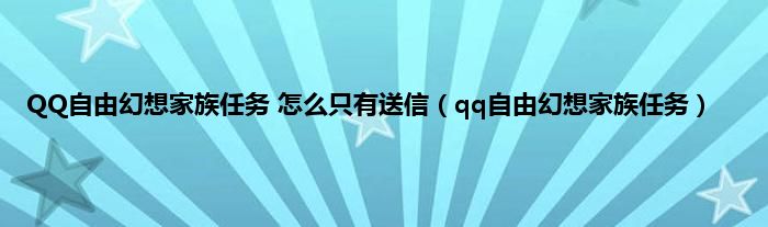 大家好,小问来为大家解答以上问题。QQ自由幻想家族任务 怎么只有送信,qq自由幻想家族任务这个很多人还不知道,现在让我们一起来看看吧!