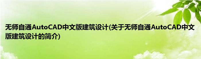 本文关于无师自通AutoCAD中文版建筑设计的简介就讲解完毕,希望对大家有所帮助。