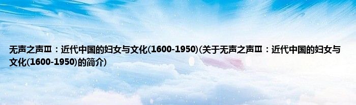 本文关于无声之声Ⅲ:近代中国的妇女与文化(1600-1950)的简介就讲解完毕,希望对大家有所帮助。