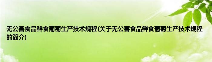 本文关于无公害食品鲜食葡萄生产技术规程的简介就讲解完毕,希望对大家有所帮助。