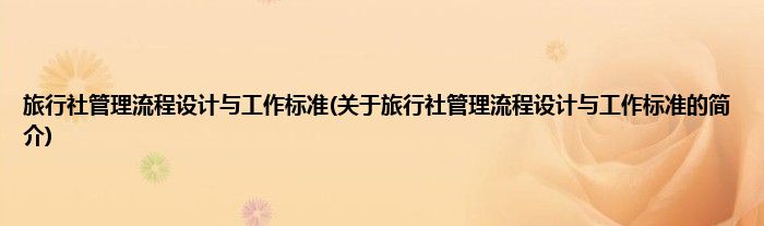 旅行社管理流程设计与工作标准(关于旅行社管理流程设计与工作标准的简介)