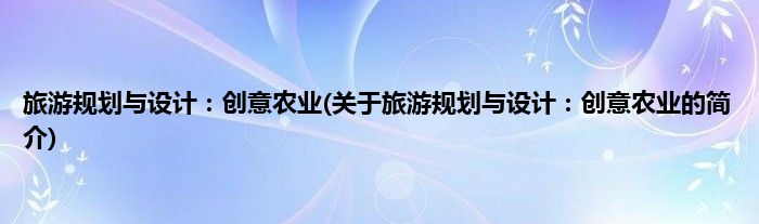 本文关于旅游规划与设计:创意农业的简介就讲解完毕,希望对大家有所帮助。