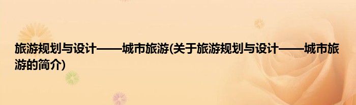 大家好,旅游规划与设计——城市旅游,关于旅游规划与设计——城市旅游的简介很多人还不知道,现在让我们一起来看看吧!