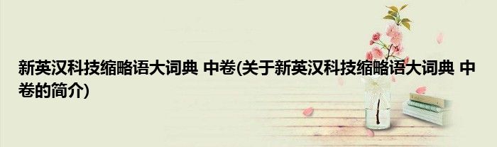 本文关于新英汉科技缩略语大词典 中卷的简介就讲解完毕,希望对大家有所帮助。