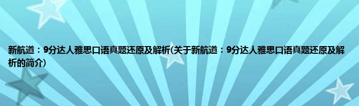 本文关于新航道:9分达人雅思口语真题还原及解析的简介就讲解完毕,希望对大家有所帮助。