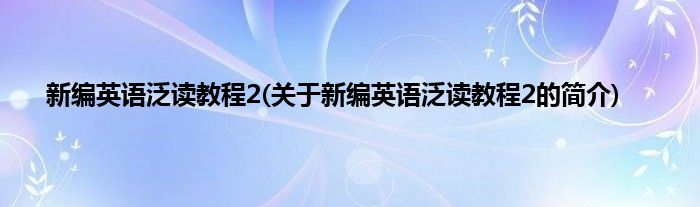 大家好,新编英语泛读教程2,关于新编英语泛读教程2的简介很多人还不知道,现在让我们一起来看看吧!
