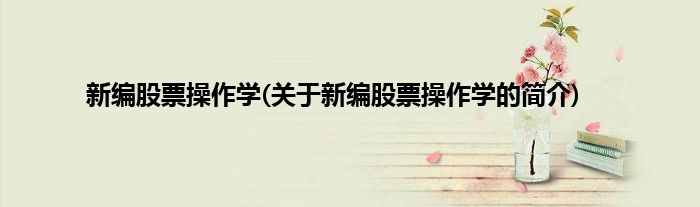 本文关于新编股票操作学的简介就讲解完毕,希望对大家有所帮助。
