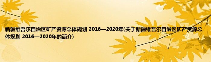 本文关于新疆维吾尔自治区矿产资源总体规划 2016—2020年的简介就讲解完毕,希望对大家有所帮助。