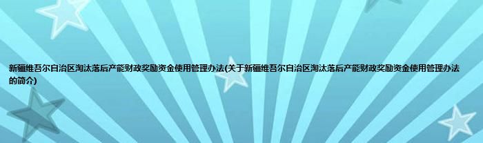 大家好,新疆维吾尔自治区淘汰落后产能财政奖励资金使用管理办法,关于新疆维吾尔自治区淘汰落后产能财政奖励资金使用管理办法的简介很多人还不知道,现在让我们一起来看看吧!