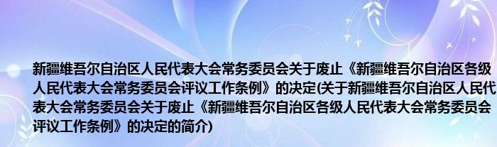 本文关于新疆维吾尔自治区人民代表大会常务委员会关于废止《新疆维吾尔自治区各级人民代表大会常务委员会评议工作条例》的决定的简介就讲解完毕,希望对大家有所帮助。