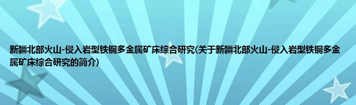 本文关于新疆北部火山-侵入岩型铁铜多金属矿床综合研究的简介就讲解完毕,希望对大家有所帮助。