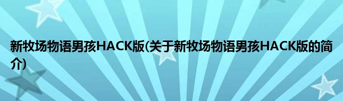 本文关于新牧场物语男孩HACK版的简介就讲解完毕,希望对大家有所帮助。