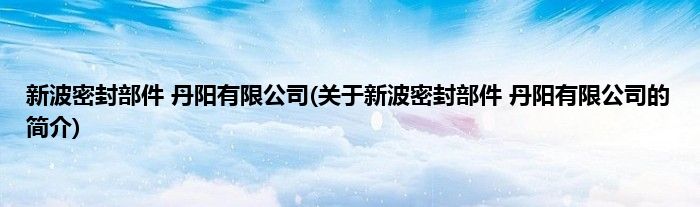 新波密封部件 丹阳有限公司(关于新波密封部件 丹阳有限公司的简介)
