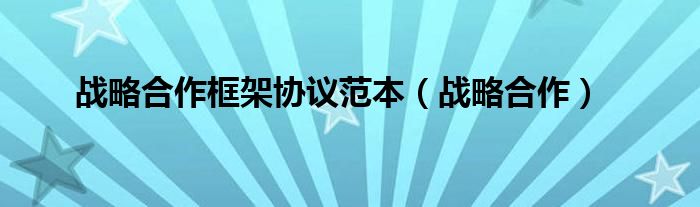 大家好,小问来为大家解答以上问题。战略合作框架协议范本,战略合作这个很多人还不知道,现在让我们一起来看看吧!