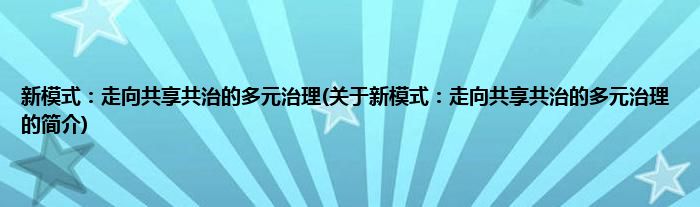 本文关于新模式:走向共享共治的多元治理的简介就讲解完毕,希望对大家有所帮助。