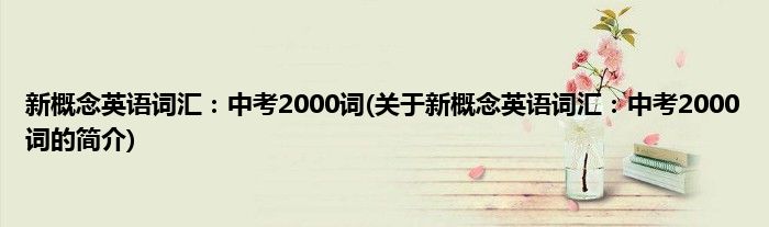 本文关于新概念英语词汇:中考2000词的简介就讲解完毕,希望对大家有所帮助。