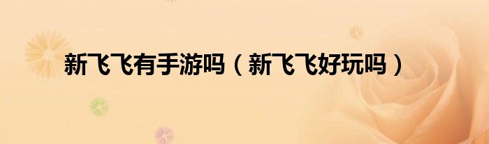 以上就是【新飞飞有手游吗,新飞飞好玩吗】相关内容。