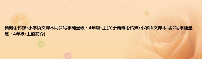 本文关于新概念传媒·小学语文课本同步写字随堂练:4年级·上的简介就讲解完毕,希望对大家有所帮助。