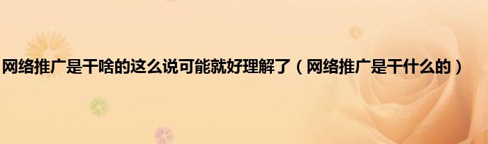 以上就是【网络推广是干啥的这么说可能就好理解了,网络推广是干什么的】相关内容。