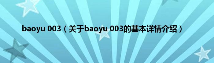 本文关于baoyu 003的基本详情介绍就讲解完毕,希望对大家有所帮助。