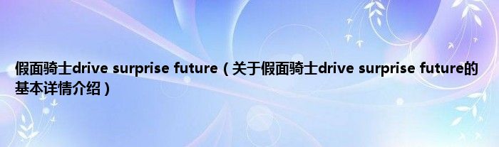 本文关于假面骑士drive surprise future的基本详情介绍就讲解完毕,希望对大家有所帮助。