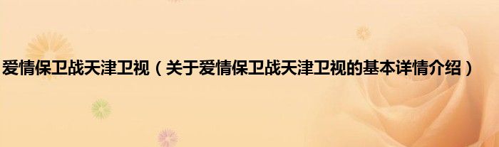 本文关于爱情保卫战天津卫视的基本详情介绍就讲解完毕,希望对大家有所帮助。