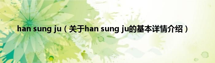 本文关于han sung ju的基本详情介绍就讲解完毕,希望对大家有所帮助。