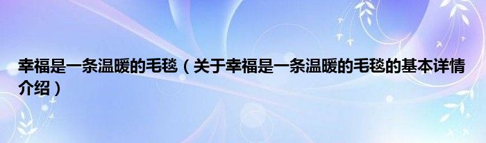 本文关于幸福是一条温暖的毛毯的基本详情介绍就讲解完毕,希望对大家有所帮助。