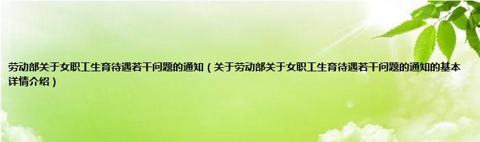 本文关于劳动部关于女职工生育待遇若干问题的通知的基本详情介绍就讲解完毕,希望对大家有所帮助。