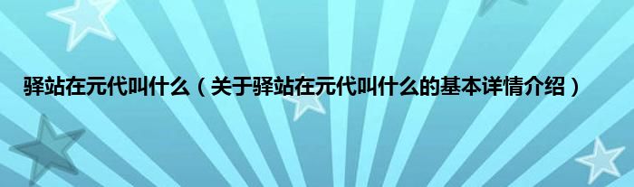 本文关于驿站在元代叫什么的基本详情介绍就讲解完毕,希望对大家有所帮助。