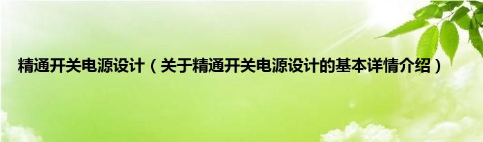 精通开关电源设计(关于精通开关电源设计的基本详情介绍)